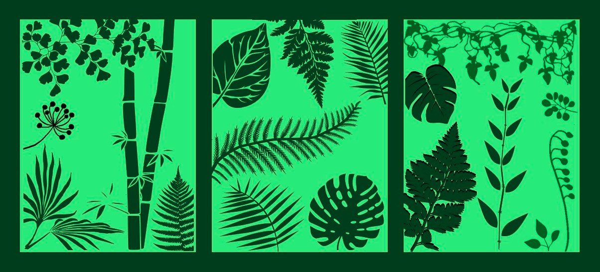 I imported some botanical PNG silhouettes into Microsoft Powerpoint and arranged them virtually within my panels. After overlaying a grid - the same way my dad taught me to draw pencil portraits as a child - I grabbed my ladders and got to work.