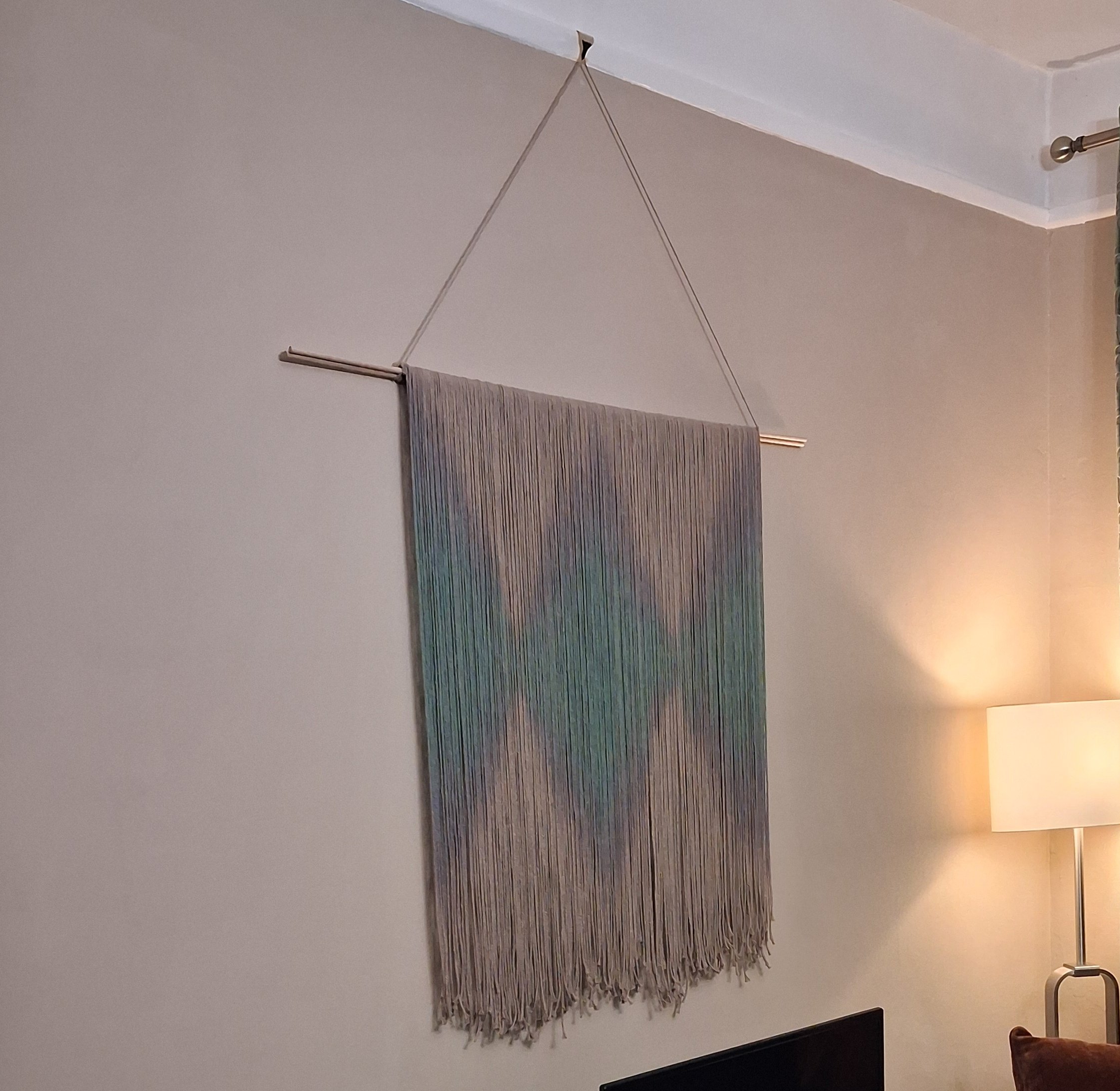 I had wall space to fill but didn't want more paintings or posters. The room needed a new texture and I liked the idea of thread art. I searched for macramé pieces with the right colours and patterns but couldn't stomach their prices.
