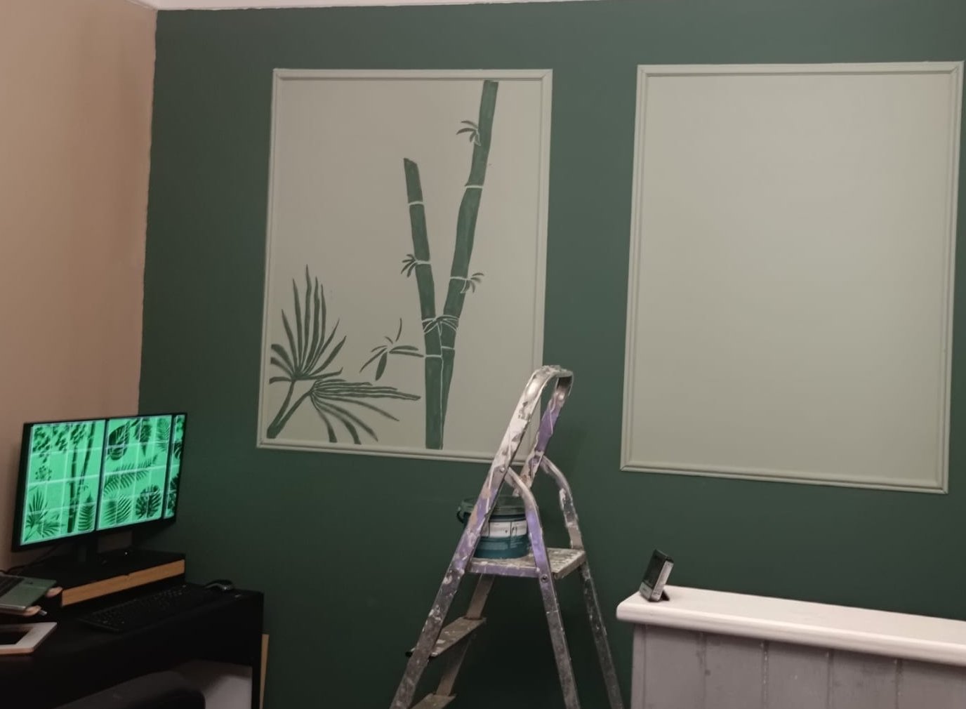 After a previous foray into Georgian wood panelling, I'd long considered filling the framed spaces. I searched online for stencils of the right sizes and styles but a good combination didn't exist.